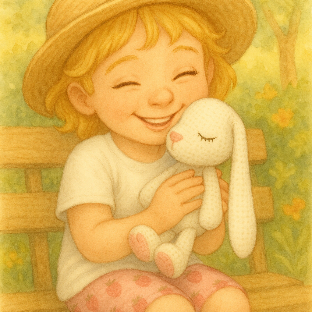 Wśród wszystkich zabawek mieszkał mały króliczek z długimi, kwiatkowymi uszkami.